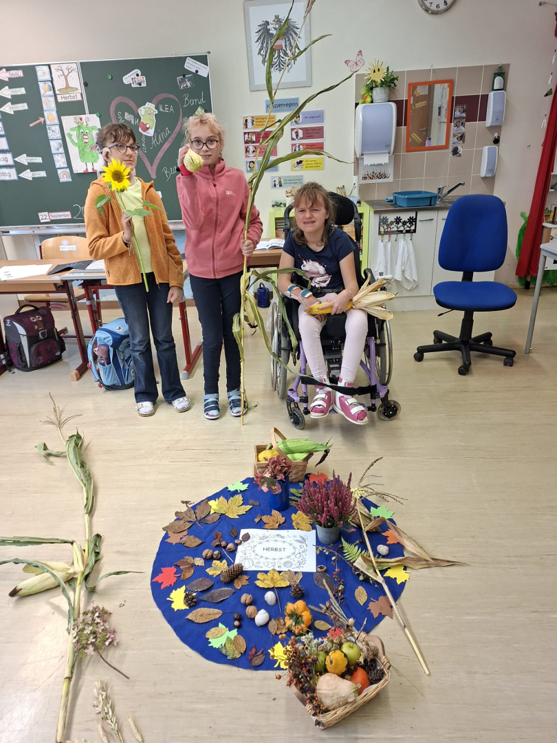 Pünktlich zum diesjährigen Herbstbeginn, am 22. September 2025, haben sich die Klassen 3d und 4b zu einem gemeinsamen Morgenkreis getroffen. Unter dem Motto „Der Herbst hat Einzug gehalten“ sangen wir ein Begrüßungslied auf die neue Jahreszeit und eröffneten so unsere gemeinsame Herbst-Stunde.