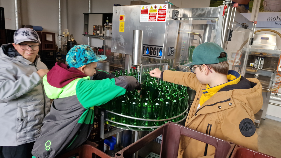 Besonders begeistert waren wir, dass wir beim Einsortieren der Flaschen selbst mithelfen durften. Zum Abschluss gab es eine Verkostung verschiedener Fruchtsäfte, bei der alle auf ihren Geschmack kamen.
