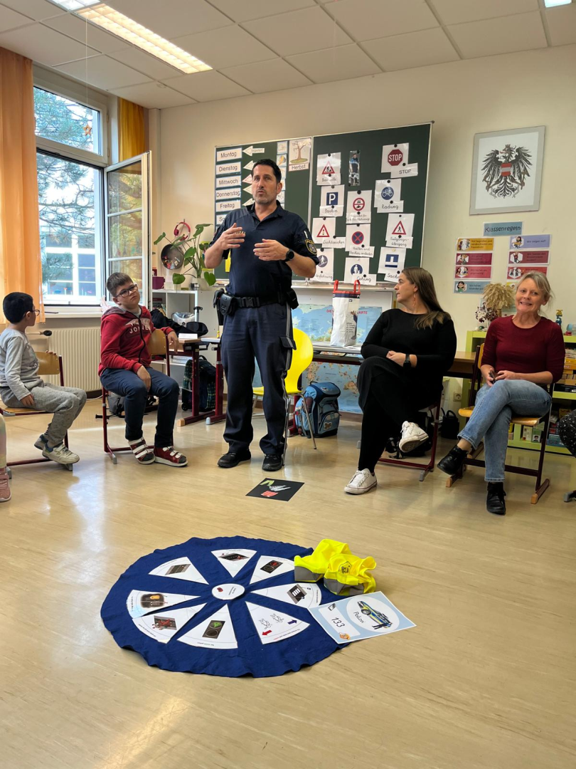 Am Mittwoch, den 15. Oktober, fand für die Klassen 3d und 4b das spannende Projekt „Sicherheit im Straßenverkehr“ statt. Herr Rene Grabner, Polizeibeamter aus Wr. Neustadt, besuchte die Kinder und vermittelte aufschlussreich und praxisnah wichtige Regeln und Verhaltensweisen im Straßenverkehr.