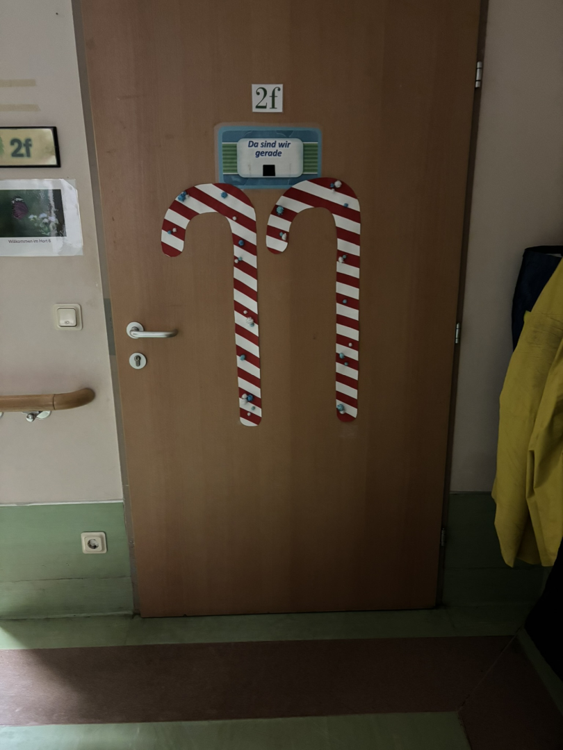 🎨 Häufig sind es selbst gebastelte Kunstwerke oder Dekorationen, die die Türen schmücken.