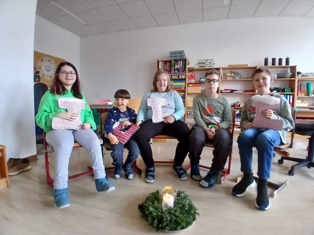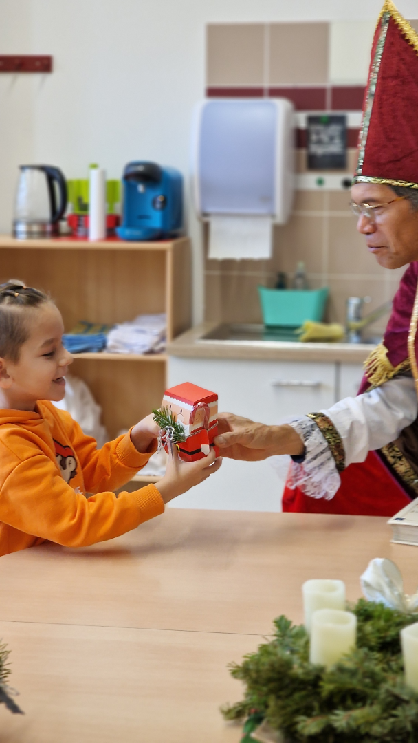 Gemeinsam wurde das Lied „Niklaus ist ein guter Mann“ gesungen, welches die Klassen mit viel Freude vorbereitet hatten. Der Nikolaus nahm sich für jede Gruppe Zeit, hörte zu, sprach liebe Worte und brachte den Kindern eine kleine Überraschung mit.