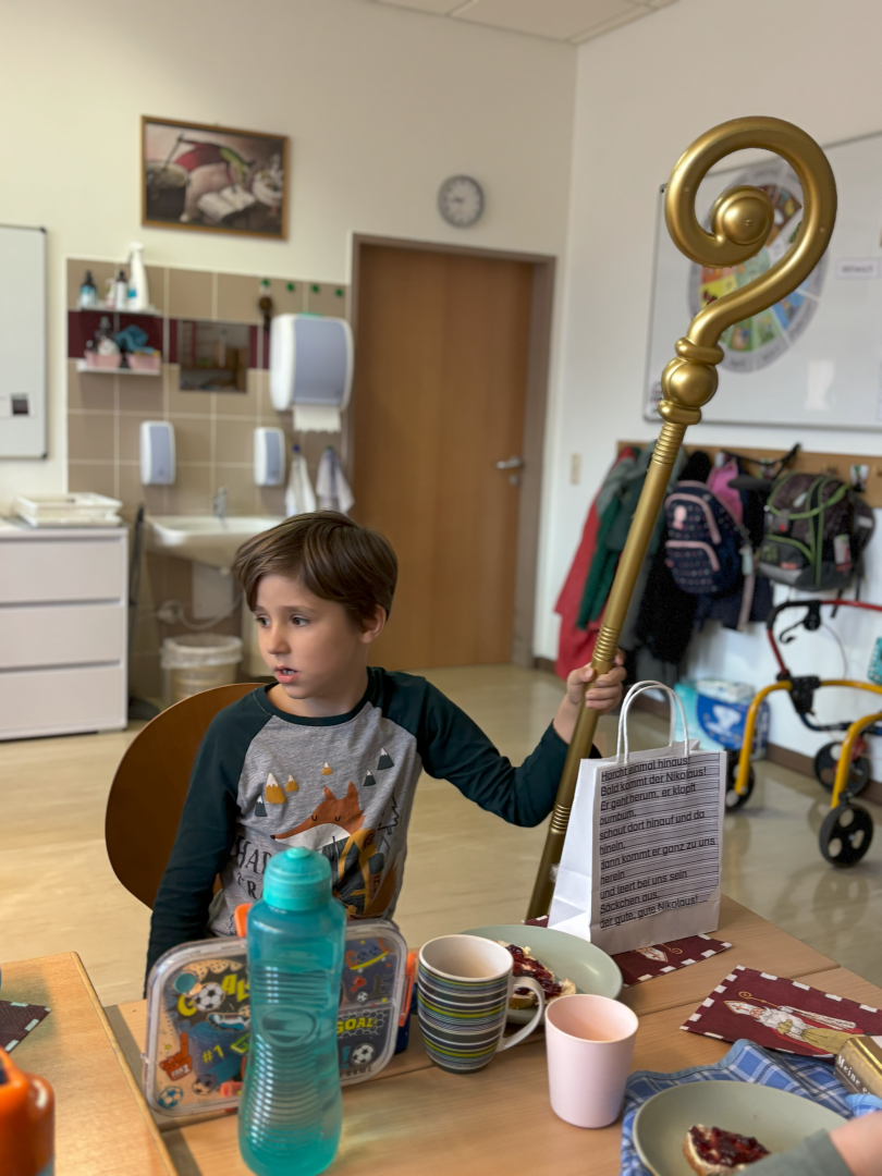 Ein besonderes Highlight: Die Kinder durften Nikolausmütze und Stab ausprobieren – ein Spaß, der für viel Lachen und Begeisterung sorgte.