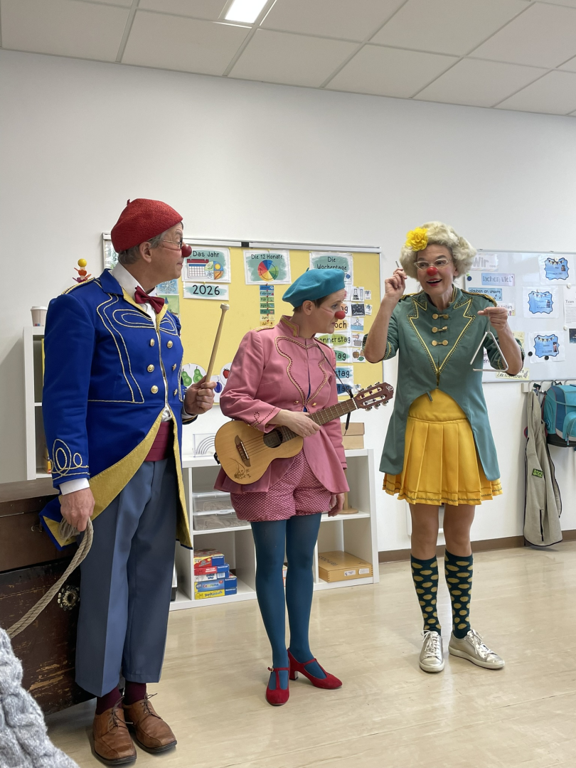 Am vergangenen Montag bekam die Klasse 3c besonderen Besuch von den ROTE NASEN Clowndoctors. Mit einem liebevoll und altersgerecht gestalteten Programm sorgten die Clowns für viele Lacher und staunende Gesichter. Die Schülerinnen und Schüler wurden aktiv eingebunden und durften mitmachen, mitsingen und mitlachen.