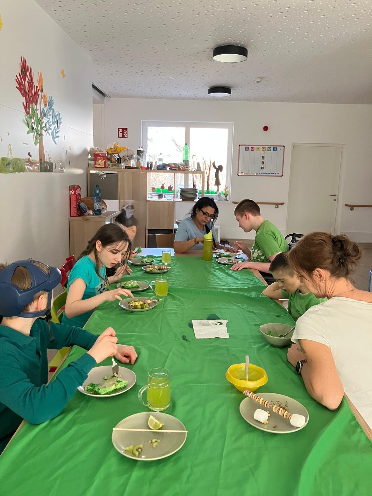 Zum Thema GRÜN hat die interne Gruppe den St. Patricks Day gefeiert. Dabei wurden Geschichten gehört, sich als Kobold verkleidet, irische Musik gehört, grüner Pudding gekocht und aus Fruit Loops ein Regenbogen gefädelt. Natürlich gab es auch einen leckeren grünen Kuchen, grünes Obst und einen grünen Saft zur Jause.