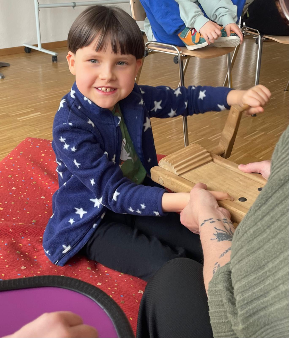 Frieda berichtete vom Eierfärben, vom Verstecken der Osternester und vom Osterhasen. Jedes Kind hatte die Möglichkeit selbst zu ratschen! Gespannt lauschten alle den Erzählungen der lustigen Puppe, stellten Fragen und erzählten auch von ihren eigenen Erlebnissen.