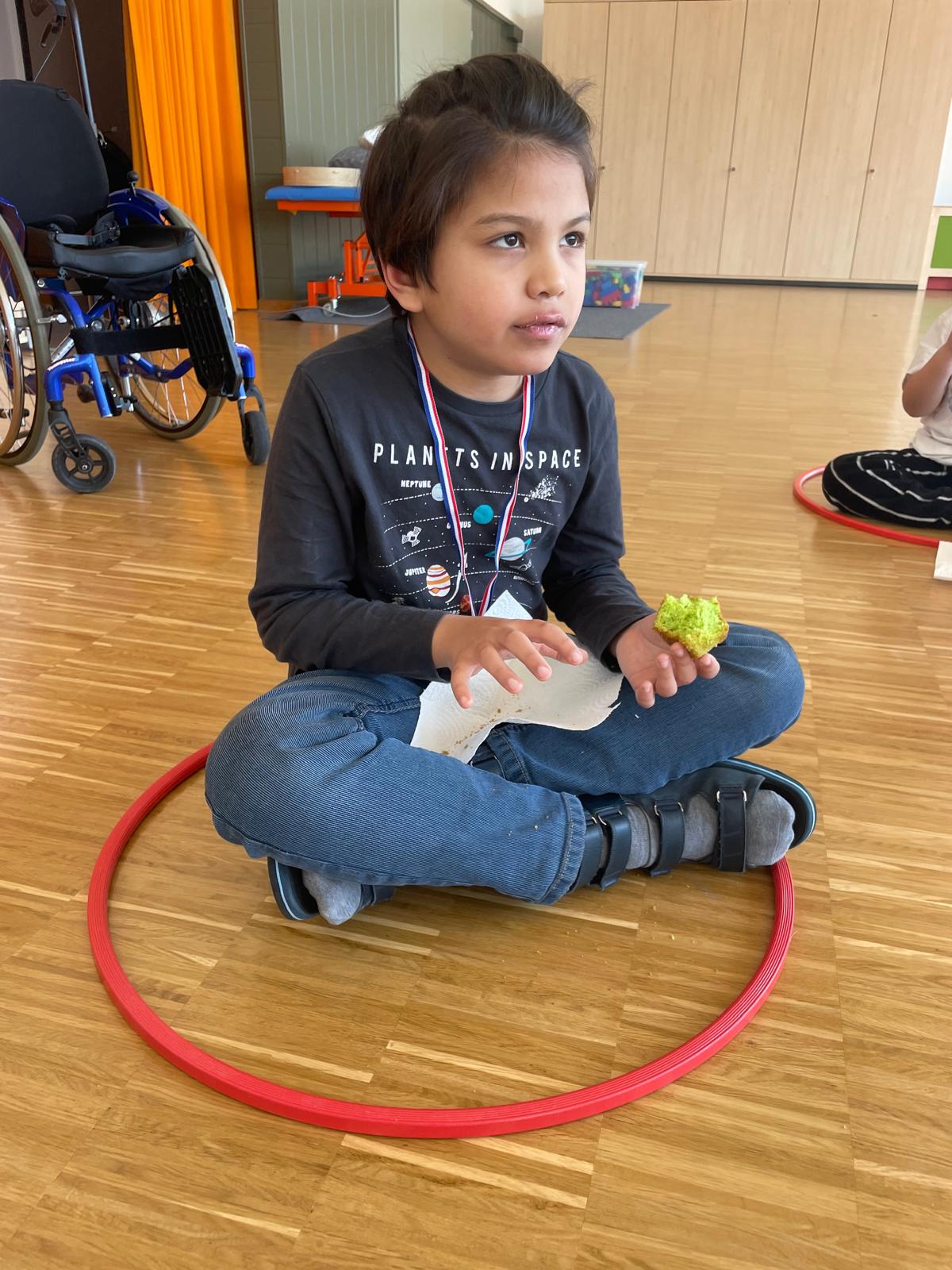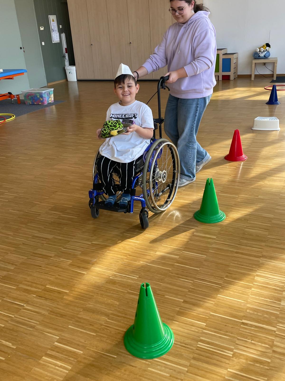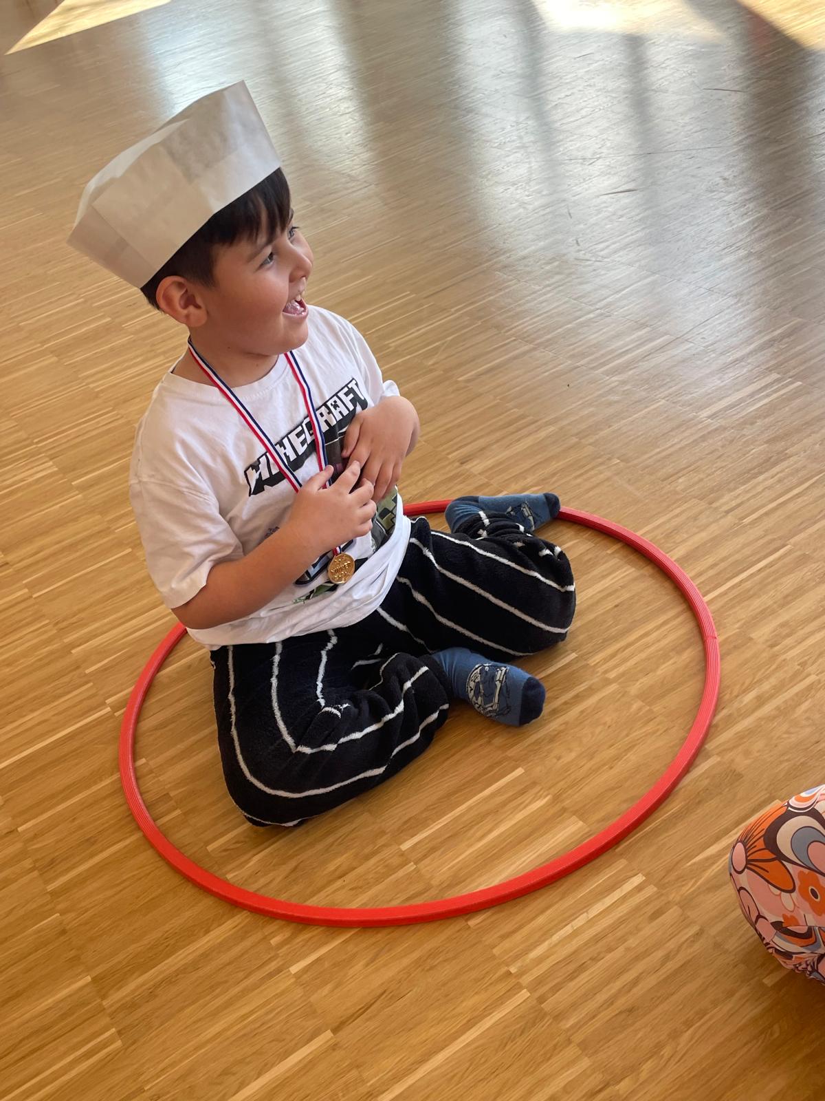 Ein besonderes Highlight war das „königliche Servieren“: Die Kinder trugen kleine Tabletts mit Bechern und Muffins durch einen Parcours. Dabei übten sie Gleichgewicht, Koordination und Konzentration. Mit viel Spaß und Bewegung wurde so spielerisch die Fein- und Grobmotorik geschult – ganz im Stil eines echten Königshofes.