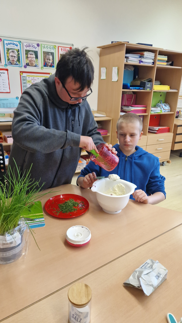 Den Abschluss unseres Projekts bildete eine gemütliche Osterjause, bei der wir unseren selbstgemachten Aufstrich sowie ein gesundes Müsli genießen konnten. Das Projekt war für alle eine schöne Erfahrung und verband Lernen, Kreativität und gemeinsames Erleben.